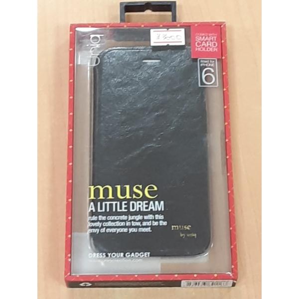 3【長031208-83(2)】新品 iPhone 6 uniq muse Black Onyx 手帳型ケース ブラック スタンド機能&カード収納ポケット付き