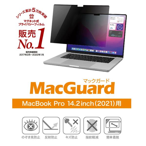 【MacbookPro 14.2インチ 2021年モデル対応】MacGuard マックガード マグネット式プライバシーフィルム 画面保護 9H ブルーライトカット のぞき見防止 MBG14PF2