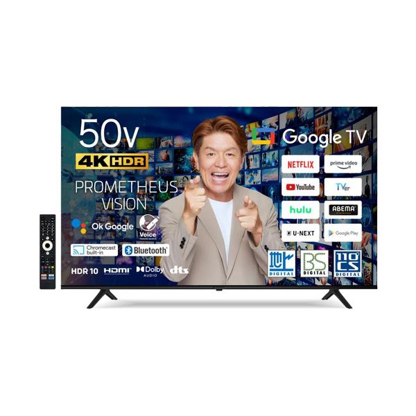 「PROMETHEUS VISION(UTV50G22G)」は、GoogleTVを搭載した4K画質対応の50インチ型テレビです。GoogleTV は、Google が提供するスマートテレビプラットフォームで、テレビ番組や映画、ストリーミングサービスなどのコンテンツを視聴できるサービスです。Google Playから新しいアプリをダウンロードしたり、Google アシスタントによる音声操作や、視聴履歴に基づいたコンテンツの提案など、さまざまな機能が搭載されています。 - 楽天での商品説明(イートレンド楽天市場店)