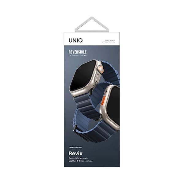 - UNIQ UNIQ45MMREVPPRUMBLU APPLE WATCH 本革×シリコン リバーシブル バンド Revix PREMIUM EDITION ●本革とプレミアムリキッドシリコンを採用したマグネットバンド!片面に防水加工を施した美しい本革を採用し、上質感を演出しています。●美しいカラー!レザーの色味にもこだわり、ファッションに馴染みやすい美しいカラーを実現しました。●リバーシブルデザイン!もう片面には滑らかで上質なシリコンを採用し、シーンに合わせてリバーシブルで使用が可能。●優れた耐久性!耐久テストを繰り返したマグネットアタッチメントは、最大1.2kgで引っ張った場合にも外れません。 【仕様】適合:Apple Watch 1-10/SE1-2/Ultra1-2 42(1-3のみ)/44/45/46/49mm素材:レザー・シリコン
