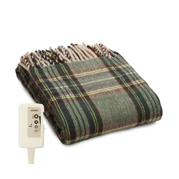 - ◆商品名:ライフジョイ 電気ひざ掛け 日本製 グリーン チェック柄 140cm×82cm 電気毛布 洗える ブランケット ふわふわ あったか JPN141GC【使い道さまざま】長さが140cmあるので、ひざに掛けるだけでなく、肩掛けやうたた寝用の掛け毛布にご使用できます。またふっくら柔らかく肌触りが良い生地を使用しておりますので、電気を入れなくてもあたたかいので、夏場のエアコン対策などにもおススメです。【おしゃれなカラーデザイン】インテリアやファッションなどに合うようベージュ、オレンジ、グリーンの3種類のカラーをご用意しました。ふさがついたマフラーのようなデザインも魅力です。【安心・安全設計】こちらの電気ひざ掛けは、安心・安全性を第一に考えて開発・製造されております。洗濯試験にも合格しているので、コントローラーを外すことで洗濯機にて洗うことができます。※ドラム型洗濯機・衣類乾燥機は不可【安全品質のS-JET認証取得】自主検査のPSEだけではなく、公正・中立な第三者認証機関から製品安全性と品質を確認してもらい、「S-JET」認証を取得しています。この「S-JET」は日本国内のSマークの中でも製品安全性、品質において最も信頼を得ているマークです。ブラックフライデー サイバーマンデー 寒さ対策 乾燥 年末準備 クリスマス イルミネーション