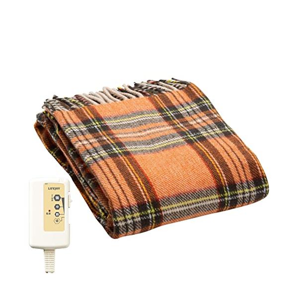 ライフジョイ 電気ひざ掛け ひざかけ ブランケット 日本製 オレンジ チェック柄 140cm×82cm 洗濯可能 あったか ふっくら やわらか