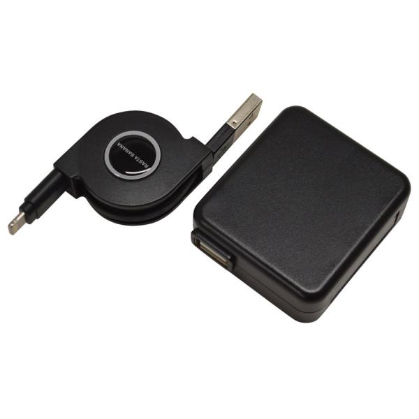 ラスタバナナ Apple MFi認証 iPhone/iPod用 ライトニング AC充電器+USBリールケーブル 1A ブラック RBMFI055