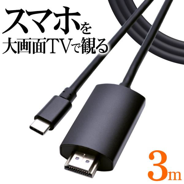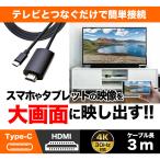 スマホ タブレット ミラーリングケーブル 4K フルHD Type-C HDMI 出力ケーブル 3メートル タイプC テレビ 大画面 3m スマートフォン R30CACH01BK ラスタバナナ