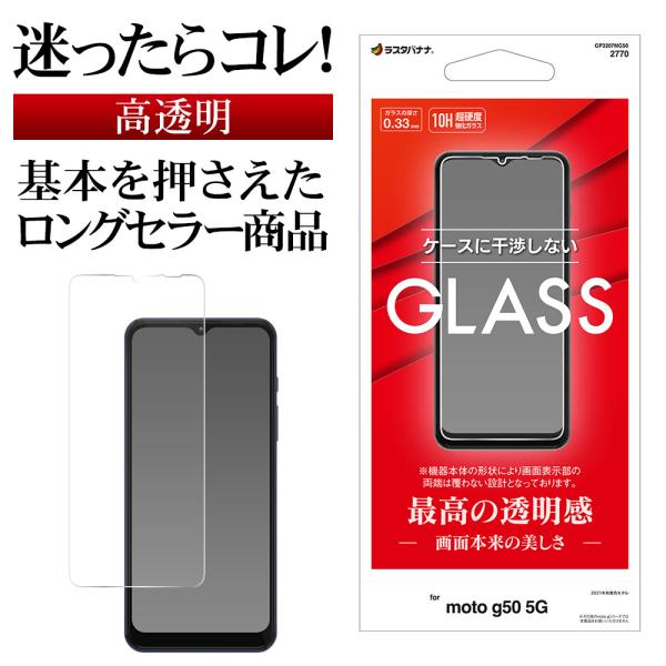 Motorola moto g50 5G ガラスフィルム 平面保護 高光沢 高透明 クリア 干渉しない 干渉レス 0.33mm 硬度10H モトg50 保護フィルム GP3207MG50 ラスタバナナ