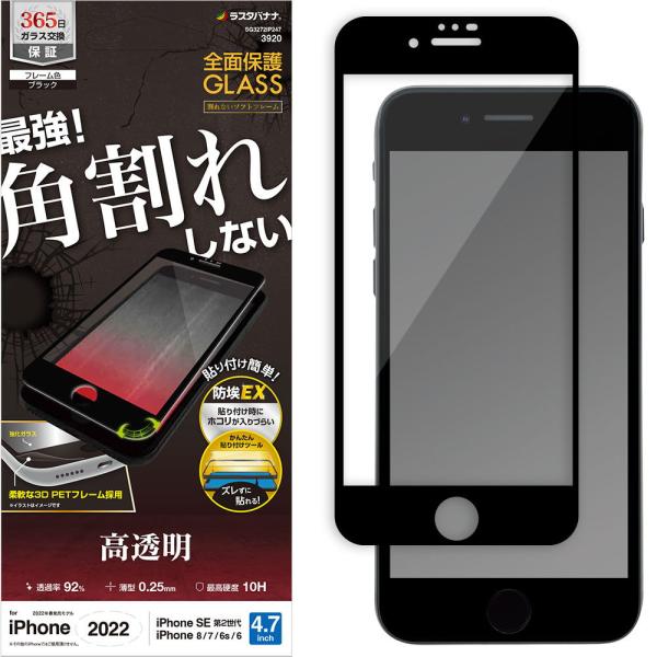 ラスタバナナ iPhone SE(第3世代/ 第2世代)/ 8/ 7/ 6s用 ガラスフィルム 全面保護 角割れしない ソフトフレーム 高光沢(ブラック) SG3272IP247 返品種別A