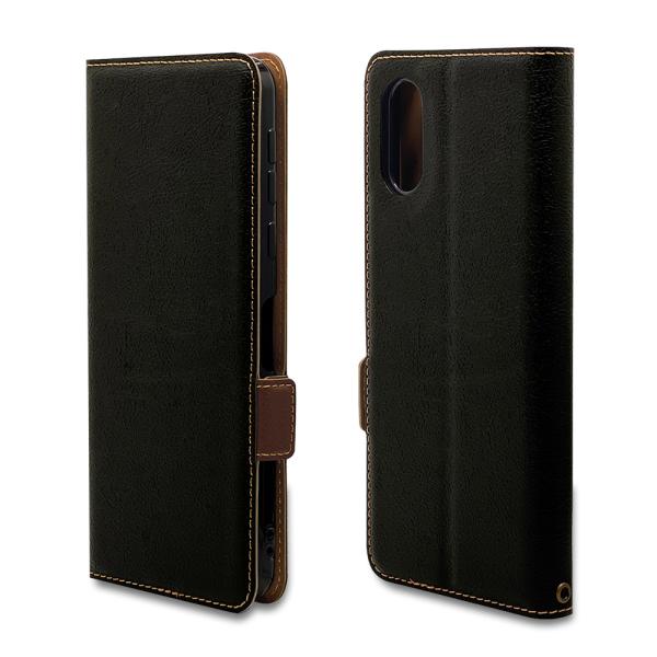ラスタバナナ シンプルスマホ6(A201SH)/ BASIO ACTIVE(SHG09)用 薄型手帳ケース サイドマグネット(ブラック/ ダークブラウン) 7343BSACBO 返品種別A