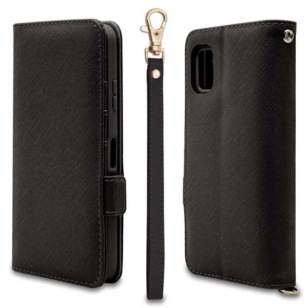 ラスタバナナ AQUOS wish3 ハンドストラップ付き手帳型ケース BK カード4枚 ブラック 7554AQOW3BO