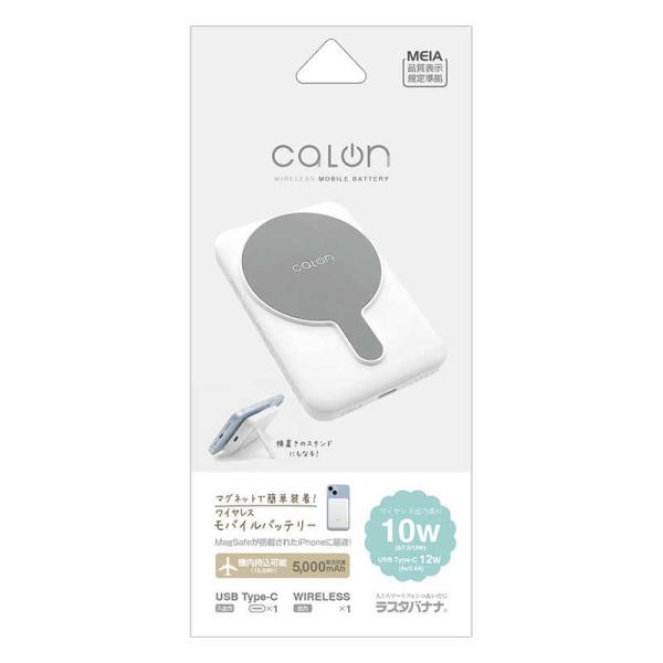 ラスタバナナ calon 5000mAh マグネット付ワイヤレスモバイルバッテリー WC10W C5V2.4A出力 ホワイト [1ポート] RLI050WCC10W01WH