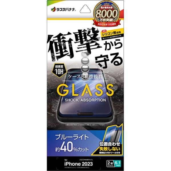 ラスタバナナ iPhone15(6.1inch/ 2眼)用 液晶保護ガラスフィルム 衝撃吸収 ブルーライトカット 高光沢 治具付 GSA3887IP361 返品種別A