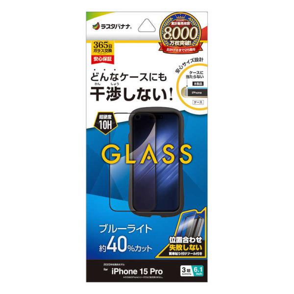 ラスタバナナ iPhone15 Pro 6.1インチ ガラスフィルム ケースに干渉しない 絶妙設計フレームガラス ブルーライトカット 高光沢 簡単貼り付け治具付き