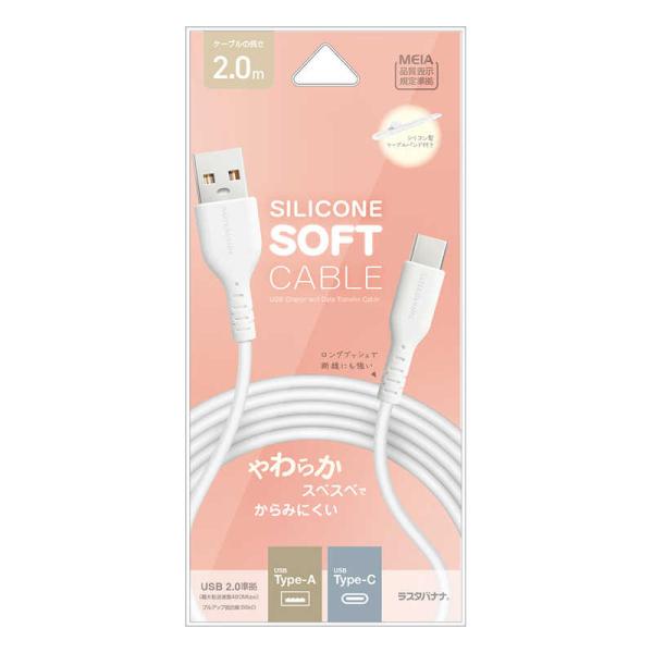 ラスタバナナ USB-A to Type-C 柔らかシリコンケーブル 2.0m WH [USB Power Delivery対応] ホワイト R20CAAC3A05WH