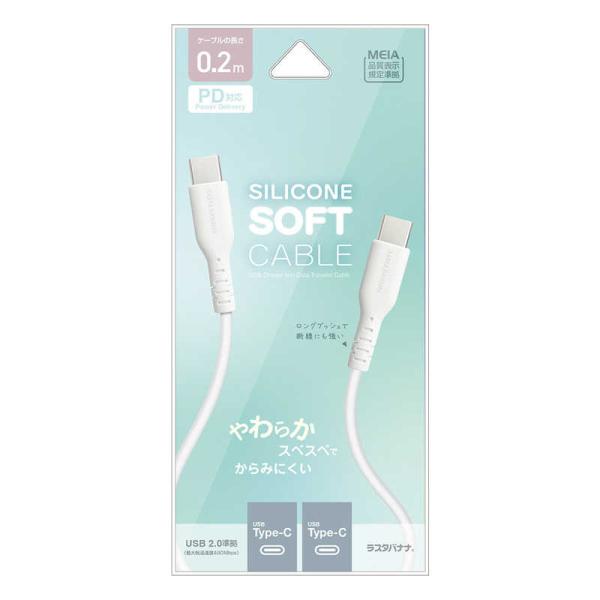 ラスタバナナ Type-C to Type-C 柔らかシリコンケーブル 0.2m WH [USB Power Delivery対応] ホワイト R02CACC3A06WH