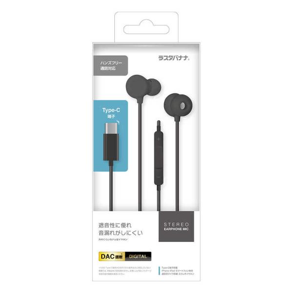 ラスタバナナ Type Cステレオイヤホンマイク SWvol付 デジタル カナル ブラック RESMSCD03BK