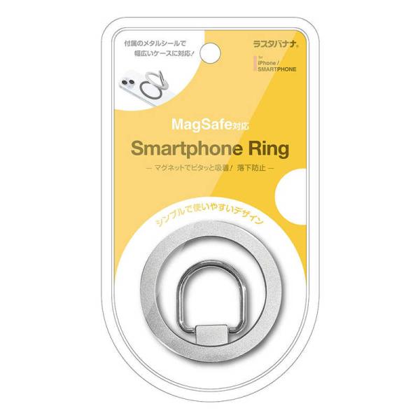 - ラスタバナナ Magsafe対応 スタンド機能付き スマホリング シルバー RMRNG04SV ●付属のメタルシールを貼ることによって、Magsafe非対応のスマートフォンやiPhoneケースで本製品を使用することが可能です。●リング部に指を通すことで手から滑り落ちる等の事故を防止し、リング部は180°開閉し横置き視聴スタンドとして使用できます。