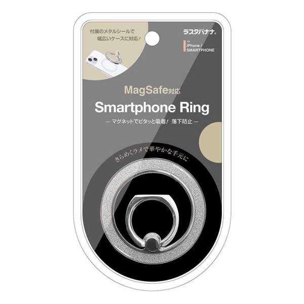 - ラスタバナナ Magsafe対応 スタンド機能付きスマホリング キラキラシルバー シルバー RMRNG06SV ●付属のメタルシールを貼ることによって、Magsafe非対応のスマートフォンやiPhoneケースで本製品を使用することが可能です。●リング部に指を通すことで手から滑り落ちる等の事故を防止し、リング部は180°開閉し横置き視聴スタンドとして使用できます。
