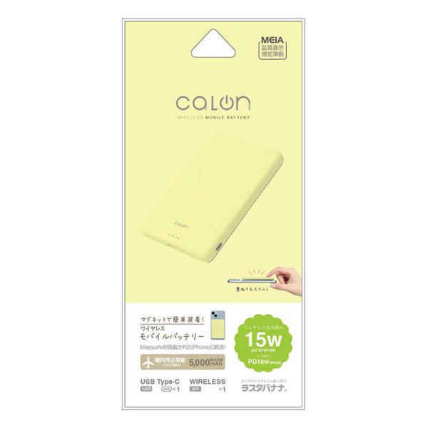 ラスタバナナ calon 5000mAh 薄型マグネット付ワイヤレスモバイルバッテリー WC15W C5V2A出力 [1ポート] ライトイエロー RLI050WCC15W01LYL