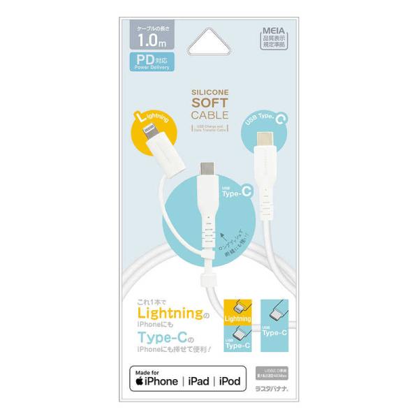 ラスタバナナ Type-C to Type-C 柔らかシリコンケーブル+C to Lightning変換 3A 1.0m ホワイト R10CACCCL3A01WH