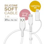 ラスタバナナ Type-A to Type-C 柔らかシリコンケーブル+C to Lightning変換 3A 1.0m ホワイト R10CAACCL3A01WH