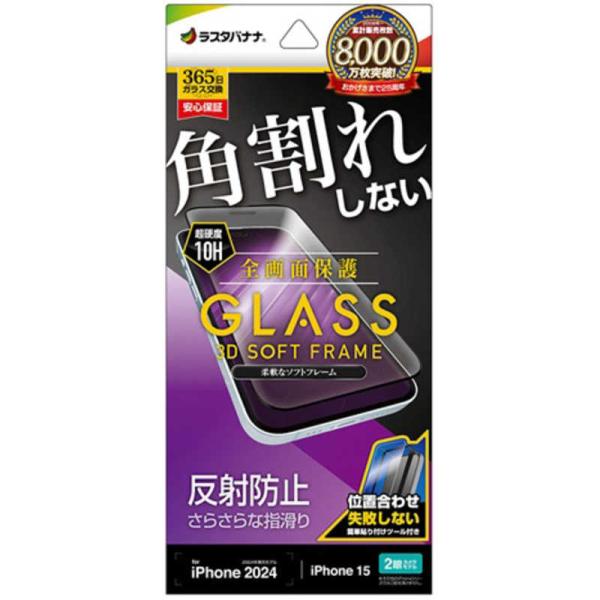 ラスタバナナ iPhone 16(6.1インチ)inchiPhone 15 ガラスフィルム 全画面保護 角割れしない3Dソフトフレーム 反射防止 簡単貼り付け治具付き ST4293IP461