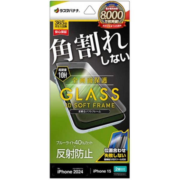 ラスタバナナ iPhone 16(6.1インチ)inchiPhone 15 ガラスフィルム 全画面保護 角割れしない3Dソフトフレーム 簡単貼り付け治具付き SY4294IP461