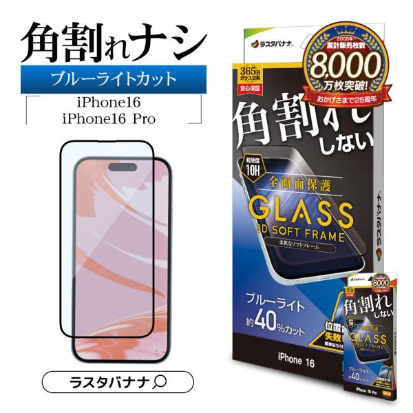 iPhone16 16 Pro iPhone15 ガラスフィルム 全面保護 ブルーライトカット 高光沢 角割れしない ゴリラガラス採用 0.25mm 簡単貼り付け アイフォン ラスタバナナ