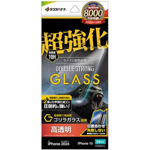 ラスタバナナ iPhone 16(6.1インチ)ガラスフィルムiPhone 15 超強化 ダブルストロング ゴリラガラス 高光沢 硬度10H 簡単貼り付け治具付き GWS4343IP461