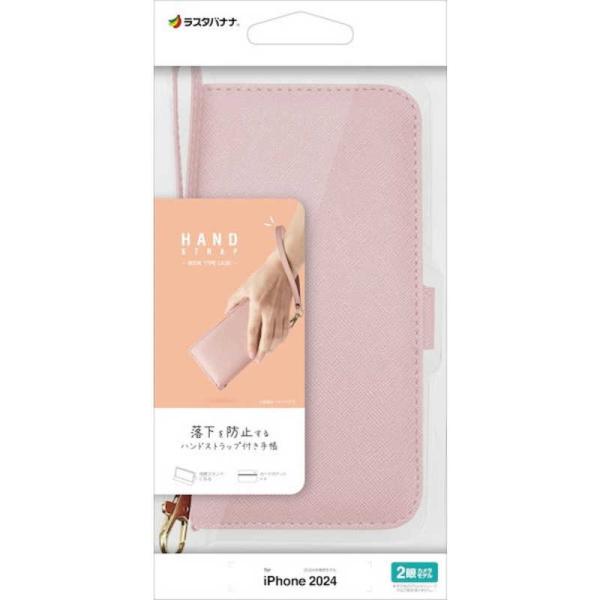 ラスタバナナ iPhone 16(6.1インチ)ハンドストラップ付き手帳型ケース ライトピンク 8090IP461BHSLPK