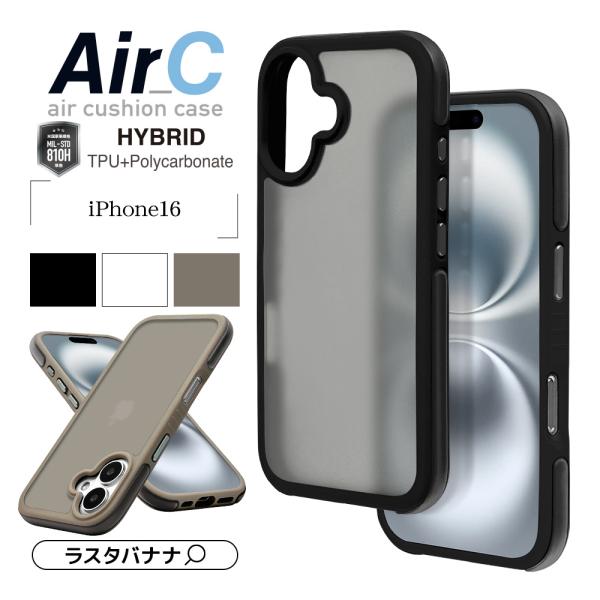 iPhone16 ケース カバー ハイブリッド Air_C 耐衝撃吸収 MIL規格 強い 頑丈 マット加工 指紋防止 TPUバンパーケース エアクッション ワイヤレス充電対応 アイフォン スマホケース ラスタバナナ