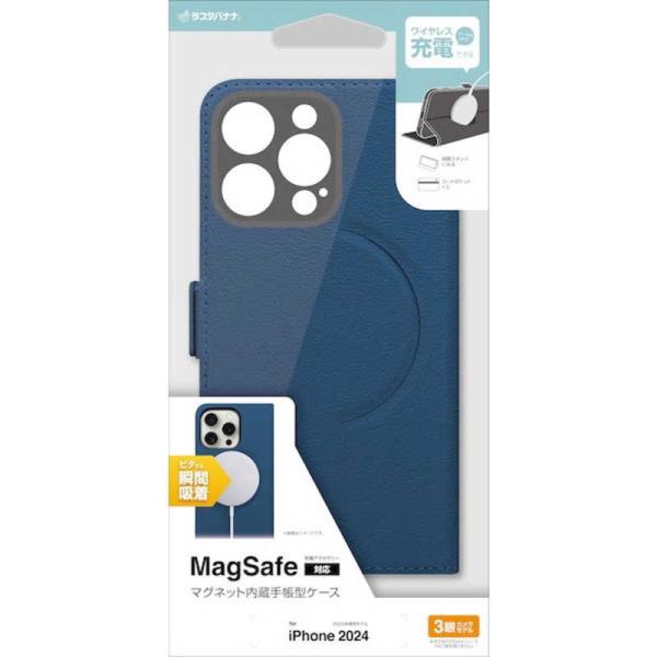 ラスタバナナ iPhone 16 Pro(6.3インチ) 手帳型ケース サイドマグネット Magsafe対応 ネイビー 8194IP461PBSMMNV
