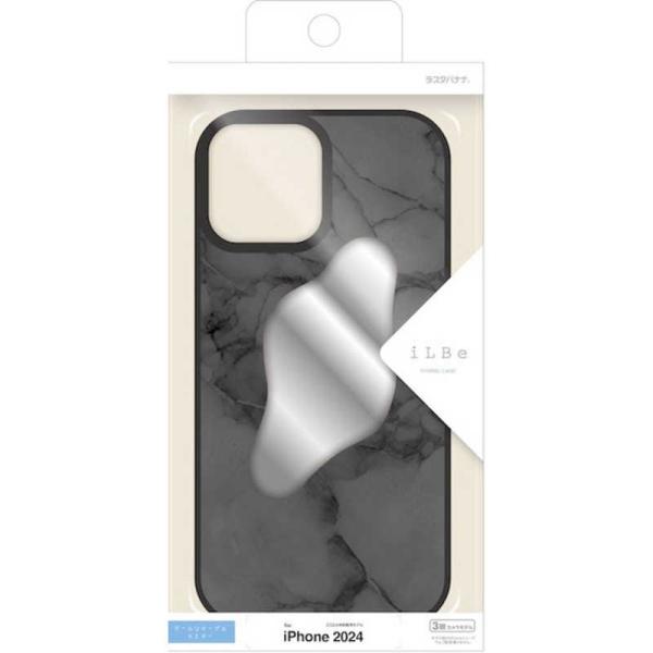 ラスタバナナ iPhone 16 Pro(6.3インチ) iLBE ハイブリッドケース TPU×PC 背面ミラー付き 大理石調 ブラック 8241IP461PHPBK