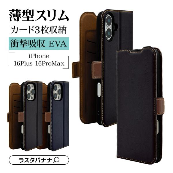 iPhone16 Plus 16 Pro Max ケース カバー 手帳型 薄型 耐衝撃吸収 カード入れ おしゃれ スタンド機能 slim Fit シンプル 大人 レディース メンズ サイドマグネット アイフォン スマホケース ラスタバナナ
