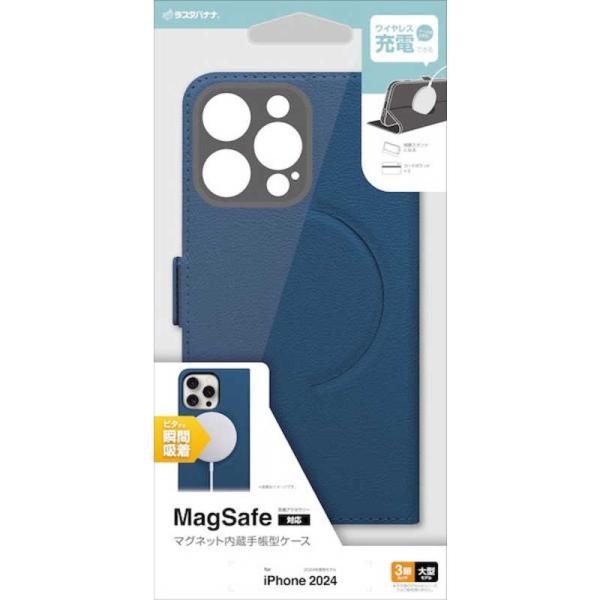 ラスタバナナ iPhone 16 Pro Max(6.9インチ) 手帳型ケース サイドマグネット Magsafe対応 ネイビー 8272IP467PBSMMNV