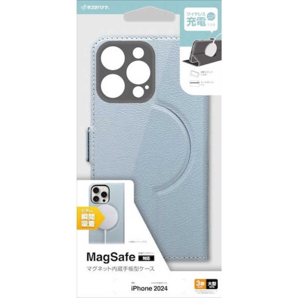 ラスタバナナ iPhone 16 Pro Max(6.9インチ) 手帳型ケース サイドマグネット Magsafe対応 ブルーグレー 8273IP467PBSMMBG
