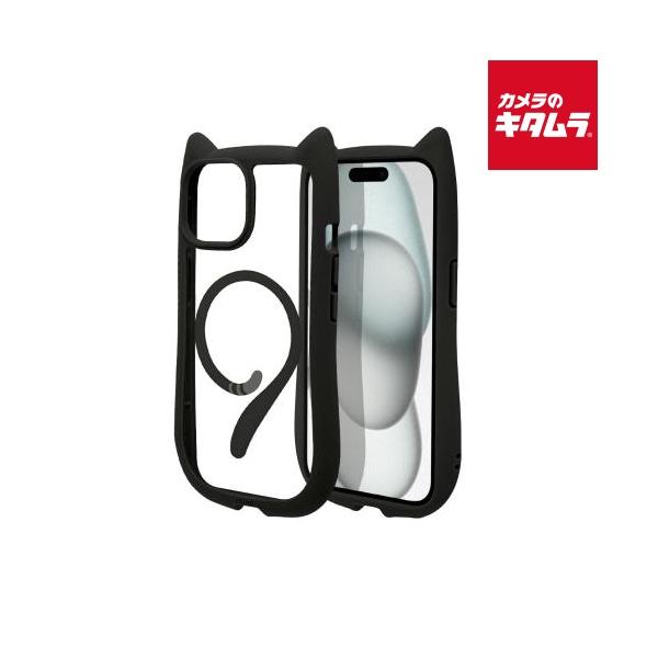 テレホンリース 8346IP361HPMBK mimi 猫耳ハイブリッドケース Magsafe対応 ブラック(iPhone 15/14/13用)
