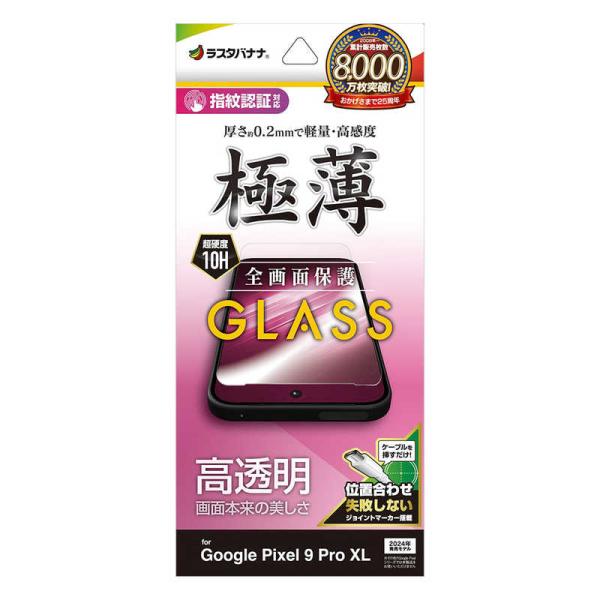 ラスタバナナ Google Pixel9 Pro XL ガラスフィルム 高光沢 薄型 0.2mm 高感度 指紋認証対応 位置合わせJM付き GP4565P9PL