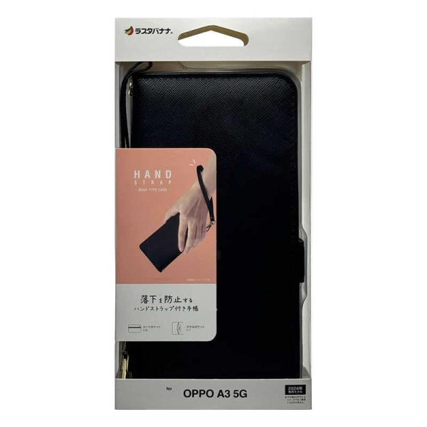 ラスタバナナ OPPO A3 5G ハンドストラップ付き手帳型ケース ブラック 8474OA3BHSBK