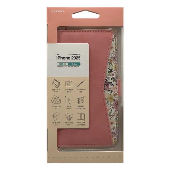 ラスタバナナ iPhone 16e 花柄手帳型ケース コーラルピンク 8623IP5EBHSCPK