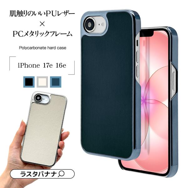 スマホケース iPhone17e 16e ケース カバー ハード メタルフレーム 軽量 背面レザー ワイヤレス充電対応 アイフォン ラスタバナナ