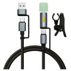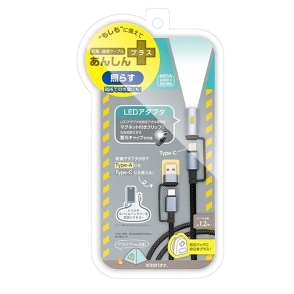 - ・充電と通信に対応・USB Type-CをUSB Type-Aに変換するアダプタ+LEDアダプタ・究極のアウトドア充電ケーブル※画像はイメージです主な特長充電と通信に対応したUSBケーブル (USB Type-C to USB Type-C)。USB Type-CをUSB Type-Aに変換するアダプタとLEDアダプタが付いています。 USB Type-Cポートを搭載した機器をUSB Type-C及びType-Aポートを搭載した充電器やパソコンに接続することで充電やデータ通信が可能。本製品は3Aまでの高出力充電器でお使いいただく事が可能です。USB PD (Power-Delivery) に対応の充電器を使用した場合、出力60W (20V/3A) までの充電に対応します。 スマートフォンやモバイルバッテリーを電源にしてLEDライトを点灯できます。LEDライトの明るさは約45ルーメン。 LEDアダプタを固定できる便利なマグネット付きクリップと、光を拡散させる蓄光キャップ、ケーブルバンドが付属。※本製品を使用して充電する際は機器本体の充電に対応した充電器をお使いください。※すべての機器で動作を保証する物ではありません。※クリップのマグネットに磁気ストライプのついたカードなど磁力に弱いものを近づけないでください。 ※オートパワーオフ機能を搭載した充電器・モバイルバッテリーはLEDライトが短時間で消灯してしまう場合があります。 ※本製品は防水仕様ではありません。※変換アダプタ及びLEDアダプタは本製品専用に設計されています。他のケーブル等には絶対に接続しないでください。※40℃以上-20℃以下となる場所、直射日光の当たる場所、ほこり・振動・湿気や水濡れの多い場所などで使用や保管しないでください。 ※本製品は日本国内でのみ使用されることを前提に設計、製造されています。国外での使用時のトラブル等はメーカー側では一切責任を負いません。■開封後のご返品はお受けできません。対応機種をお確かめの上ご注文ください。●長さ:1.2m●質量:45g●製品内容:Type-A変換・LEDアダプタ付き Type-C to Cケーブル×1、蓄光キャップ×1、ケーブルバンド×1