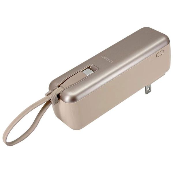 ラスタバナナ AC充電器内蔵 モバイルバッテリー 5000mAh ケーブル一体型(トープ) calon RLI050AC20W01TA 返品種別A
