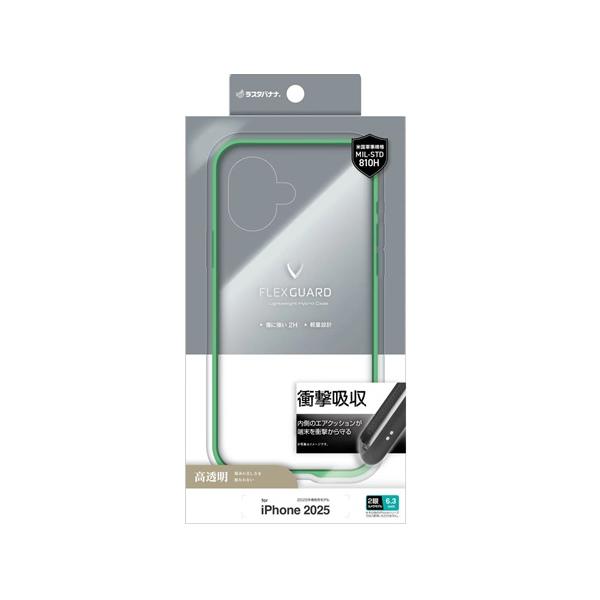 iPhone17 ケース カバー ハイブリッド FLEXGUARD 耐衝撃吸収 MIL規格 軽量 高透明 TPUバンパー ワイヤレス充電対応 グリーン×クリア ラスタバナナ 8921IP5AHPGR