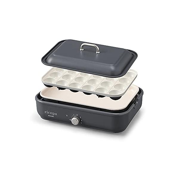 - 特殊:B096LNH84Cコード:4967576540254ブランド:アイリスオーヤマ(IRIS OHYAMA)規格:MHP-R102-H商品カラー: グレーサイズ情報:平面+たこ焼きプレート商品サイズ: 高さ15.5、幅32.5、奥行き24.3商品重量:1700この商品について商品サイズ(cm)(電源コードを除く)/たこ焼プレート装着時:幅約32.5 奥行約24.3 高さ約8.9/平面プレート ふた装着時:幅約32.5 奥行約24.3 高さ約15.5質量/たこ焼プレート装着時:約1.7kg/平面プレート ふた装着時:約1.7kg電源:AC100V(50/60Hz共用)定格消費電力:1000W温度調節範囲:保温~約250 電源コード長さ:約1.8m特徴2種プレート色グレー材質セラミックブランドアイリスオーヤマ(IRIS OHYAMA)商品の寸法24.3奥行き x 32.5幅 x 15.5高さ cmワット数1000 W商品の重量1.7 キログラム付属コンポーネントフタ電圧100 ボルト素材タイプフリーBPAフリーこの商品について商品サイズ(cm)(電源コードを除く)/たこ焼プレート装着時:幅約32.5 奥行約24.3 高さ約8.9/平面プレート ふた装着時:幅約32.5 奥行約24.3 高さ約15.5質量/たこ焼プレート装着時:約1.7kg/平面プレート ふた装着時:約1.7kg電源:AC100V(50/60Hz共用)定格消費電力:1000W温度調節範囲:保温~約250 電源コード長さ:約1.8m発送サイズ: 高さ40.4、幅29、奥行き21.6発送重量:2900毎日使いたくなる、ホットプレート。ricopaとは、スペイン語で「おいしい 楽しい」を意味するricoと、partyを組み合わせたもの。「家族や友人との食事をもっと楽しくする」をコンセプトに、さらに料理中も楽しい時間が過ごせる、おしゃれなcafeを連想するdesign series。好き、が選べるホワイトアイボリー、レッド、グレーの3color。コンパクトなカタチでテーブルをおしゃれに演出。気に入る使いやすさで、料理の時間が楽しくなります。 シンプルな操作性誰でも使いこなせる、つまみを回すだけの簡単操作。 料理の幅が広がる2種のプレート 平面プレート焼き調理や煮込み料理など、幅広い調理に対応できます。 たこ焼きプレート一度に24個のたこ焼きが作れるプレートです。アヒージョやひとくちケーキポップも作れるので、パーティでも大活躍。 最大250 の高温で焼き上げる保温から最大約250 の高温まで無段階で温度調節ができ、お好みの加減でおいしく調理出来ます。 セラミックコーティングで利便性UP 美味しく焼ける遠赤外線効果セラミックは熱伝導率に優れ、食材を内側から温める効果があります。短時間で芯までじっくり火を通し、料理をふっくら仕上げます。 長く使える耐久性硬い材質で変形に強く、傷や錆がつきにくい。また、非粘着性を持ち、こびりつきにくいので料理も取りやすい。メーカーによる説明 平面プレート たこ焼きプレート セラミックコーティング 最大250 こびりつきにくい硬い素材で変形に強く、傷やサビが付きにくい。非粘着性を持ち、こびりつきにくいから料理も取りやすい。商品詳細電源:AC 100V 50/60Hz共用 定格消費電力:1000W温度調節範囲:保温 約250 電源コード長さ:約1.8m ミニホットプレートカートに入れる単機能レンジカートに入れるケトル購入オプションオーブントースターカートに入れるグリルなべカートに入れるカスタマーレビュー5つ星のうち4.1 965つ星のうち3.8 395つ星のうち4.1 2655つ星のうち3.9 3635つ星のうち3.8 613価格 8,800 8,800 14,375 14,375— 6,480 6,480 9,480 9,480サイズ幅32.5 奥行24.3 高さ15.5cm幅44 奥行32.5 高さ25.8cm幅19 奥行15 高さ26cm幅33.2 奥行22.1 高さ29cm幅33 奥行25 高さ17.3cm詳細最大250 約17L約0.8L2枚焼き最大250 ポイント1平面プレート/たこ焼きプレート3段階出力自動電源OFF機能最大1000W深なべプレート/平面プレートポイント2セラミックコーティングタイマー最大15分空だき防止機能タイマー最大15分つまみ調整だけの簡単操作ポイント3つまみを回すだけの簡単操作ヘルツフリー式開閉ロック付き受け皿付きサーモスタット機能で過度な温度上昇を防ぐ