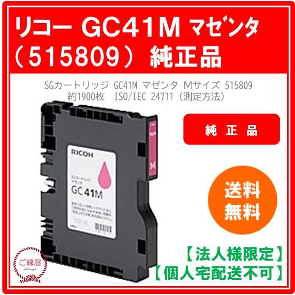 【法人様限定】リコー SGカートリッジ GC41M マゼンタ Mサイズ 515809 国内純正品 1個