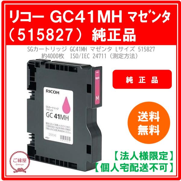 【法人様限定】リコー SGカートリッジ GC41MH マゼンタ Lサイズ 515827 国内純正品 1個