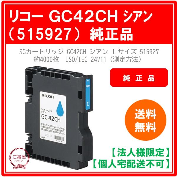 【法人様限定】リコー SGカートリッジ GC42CH シアン Lサイズ 515927 国内純正品 1個