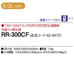 - 商品情報 型番 RR-300CF 容量 2.0〜6.0L(11合~33合) 炊飯食数 70人 (一人あたりご飯量を150gとした場合) 外形寸法 高さ×幅×奥行(cm) 42.6×49.2×42.3 質量(kg) 13 ガス接続 都市ガス:φ13mmガス用ゴム管接続(別売) プロパンガス:φ9.5mmガス用ゴム管接続(別売) 電源 単三乾電池×1個 ガス消費量 13A:5.52kW(4,750kcal/h) LPG:5.54kW(0.396kg/h) タイマー機能 なし 保温機能 なし 炊飯時間 洗米おき:約24分 ※最大炊飯量で炊いた場合 ※蒸らし時間は含まない その他 内釜フッ素仕様 ※ガスホースは、別途ご購入ください。この商品には含まれておりません。 また、都市ガス用はガス栓の口径が13mmとなります。弊社で取り扱っているガスホースでは接続できません。