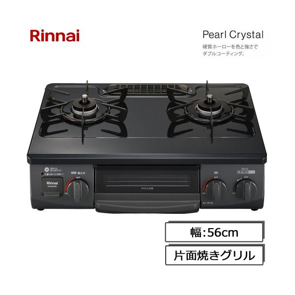 ガスコンロ リンナイ RTE565PBKL LP ガステーブル パールクリスタル 片面焼きグリル プロパンガス用 左強火力 56cm幅 ブラック