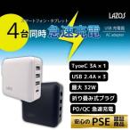 USB ACアダプター Lazos L-AC4-W 急速充電 4ポート Type-C対応 最大32W コンパクト 軽量 家庭用 コンセント スマホ タブレット 旅行 出張 持ち運び 人気