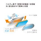 ペルチェ素子(電熱冷却機能)を搭載した、風ゼロの温冷テクノロジー。
